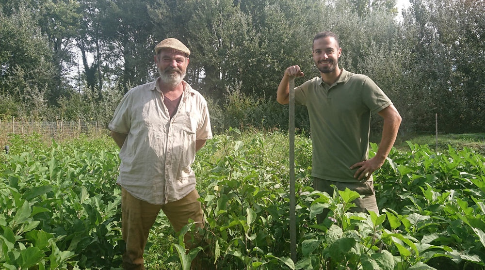 Patrick Vidal et Yoan Roques, encadrants techniques à l'atelier maraîchage du Village à Cavaillon, dans le Vaucluse. Le village est une association qui fait de l'insertion pour adultes autour de différents ateliers.