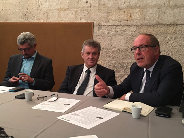 Régis Serres, président d’Arterris, Thierry Blandinières, directeur général et Philippe Mangin, président d’InVivo. © M.Sagnes