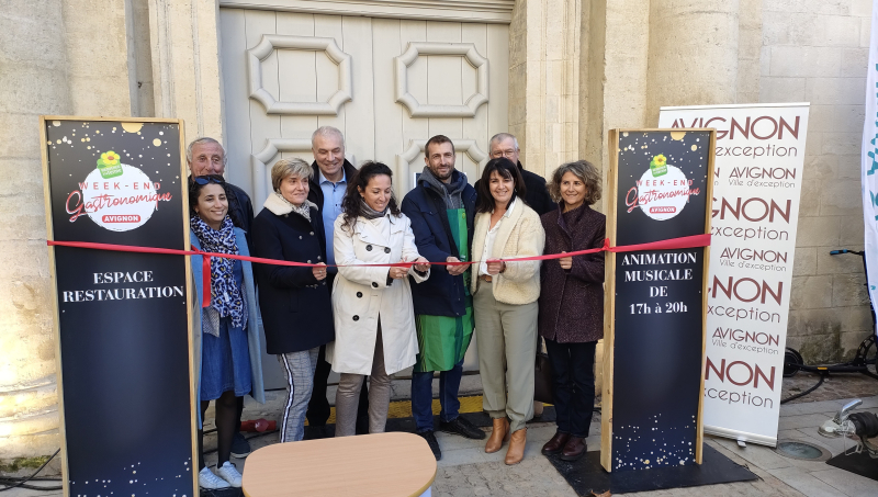 Cécile Helle, maire d'Avignon, est ravie de ce moment, véritable "aubaine pour trouver des agriculteurs de toute la France avec leurs bons produits, à quelques jours des fêtes. C'est un vrai régal. À la demande de l'équipe organisatrice, une nocturne tiendra dans le cloître des Célestins, pour la première fois. Une autre ambiance à découvrir dans ce lieu féerique". Avant que tout ce petit monde ne s'éparpille pour faire des emplettes, la préfète, Violaine Demaret, veut se rattraper de son absence l'an dernier : "Cette année, c'était bien à mon agenda. Et je suis heureuse de voir qu'aujourd'hui, malgré les difficultés qui restent, nous arrivons à voir le côté heureux de notre agriculture vauclusienne et nationale. Cela ne nous fait pas éluder les difficultés. Nous allons continuer de travailler avec vous, avec la profession". Puis cite un sociologue : "La gastronomie, c'est l'art d'utiliser la nourriture pour créer du bonheur. On en a tous bien besoin. Le 'Week-end gastronomique' a 18 ans, c'est l'âge de la majorité. Un moment idéal pour faire la fête !".