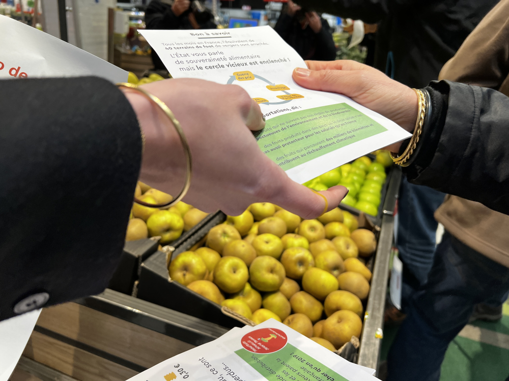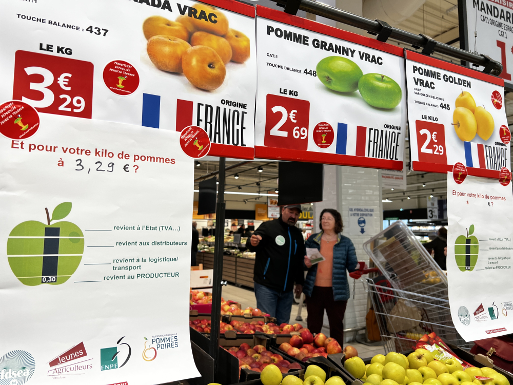"Si on se retrouve aujourd'hui, c'est pour dénoncer les marges abusives des intermédiaires. On ne demande pas aux consommateurs de payer vingt centimes supplémentaires. Tout ce qu'on veut, c'est une juste rémunération de l'ensemble des acteurs : il y a de quoi pour payer tout le monde", affirme Paul Coynel. À ce jour, la production du kilogramme de pommes est estimée à un coût de 50 centimes pour le producteur, kilo pour lequel il n'en perçoit que 30 à la vente.