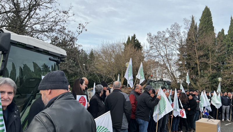 Ce lundi 14 janvier, c'était cette fois à Tournon-sur-Rhône, en Ardèche, que les agriculteurs se sont rendus. Dans l'impasse face à la Drosophila suzukii et les interdictions de multiples produits phytosanitaires utilisés dans la lutte contre les ravageurs, les cerisiculteurs ardéchois ont été rejoints par une délégation du Vaucluse d'environ 25 arboriculteurs. "La manifestation a débouché sur un futur rendez-vous avec le ministre, mais nous sommes toujours pendus à un clou concernant les phytos", annonce Sophie Vache, présidente de la FDSEA 84.