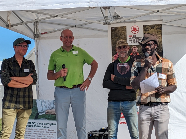 Tout au long de la journée, Cyriaque Crosnier-Mangeat, agronome et co-gérant d'Agrosemens et membre du conseil d'administration d'Agribio 13, a souligné l'action de sa maison semencière et "l'importance de défendre une bio engagée". Des propos évidemment salués par Pierre-Koffi Alanda, président de Bio de Provence-Alpes-Côte d'Azur.