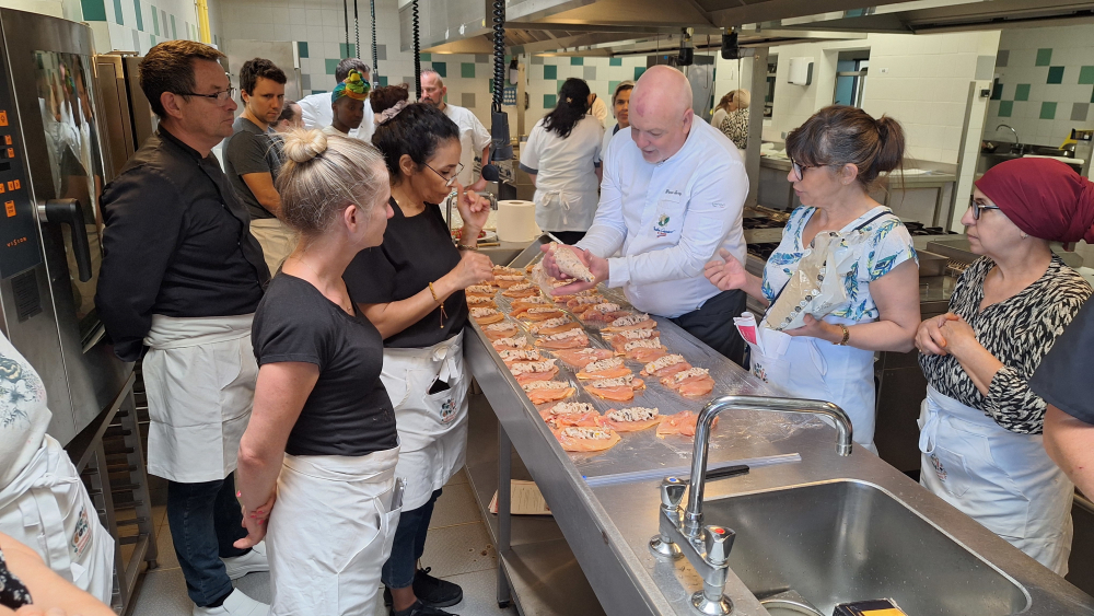 Dans le cadre de la 2e édition de 'Bien bon', rendez-vous gourmands du Grand Avignon, un atelier culinaire avec les chefs de sept cuisines centrales de l'agglomération, deux maisons de retraite, le restaurant universitaire du Crous et du restaurant interentreprises de l'Inrae et plusieurs centres sociaux, s'est tenu le 26 juin dans les cuisines de l'École hôtelière d'Avignon. Animé par Christian Étienne, chef étoilé et Patrice Leroy, responsable formation à l'école hôtelière, cet atelier avait pour objectif de réaliser, en direct, un menu gastronomique qui sera servi la semaine du 16 au 20 septembre prochain dans les cantines et restaurant collectifs de l'agglomération. Ainsi, plus de 10 000 gourmands se régaleront d'un tartare de tomates et gressin, dos de lieu en croûte d'herbes ou ballottine de volaille et d'un riz au lait et son coulis de fraises fraîches ! "L'idée de cet atelier est de permettre aux chefs des cuisines collectives d'échanger avec Christian Étienne et Patrice Leroy sur les ajustements éventuels à faire sur le menu, afin qu'il soit réalisable à l'échelle de cantines" explique Carole Amy, en charge du marketing territorial au Grand Avignon.