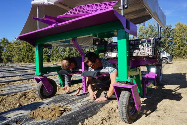Améliorer à la fois ergonomie et productivité est un double objectif possible. André Bernard l’avait expérimenté en œuvrant à la mise au point d’une machine pour récolter les melons dans les années 1990. Toujours à l’affût de techniques innovantes, il aime les tester sur son exploitation et en faire profiter d’autres producteurs : paillage en plastique biodégradable, essais de couverts végétaux… Alors, là, il a vite repéré le potentiel de cet engin.