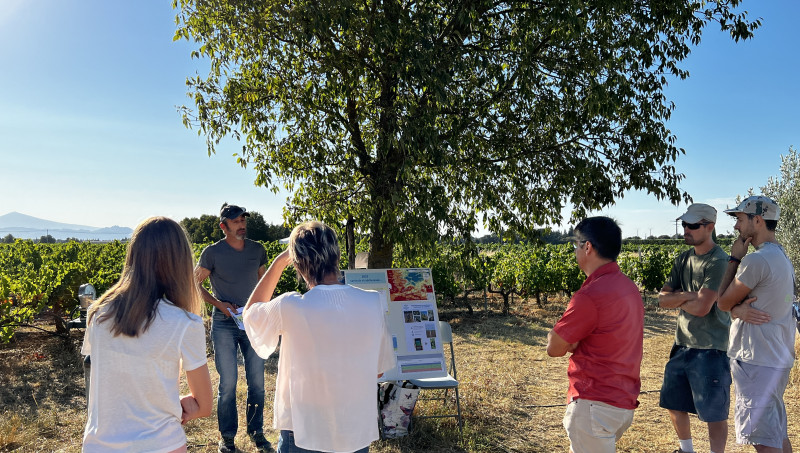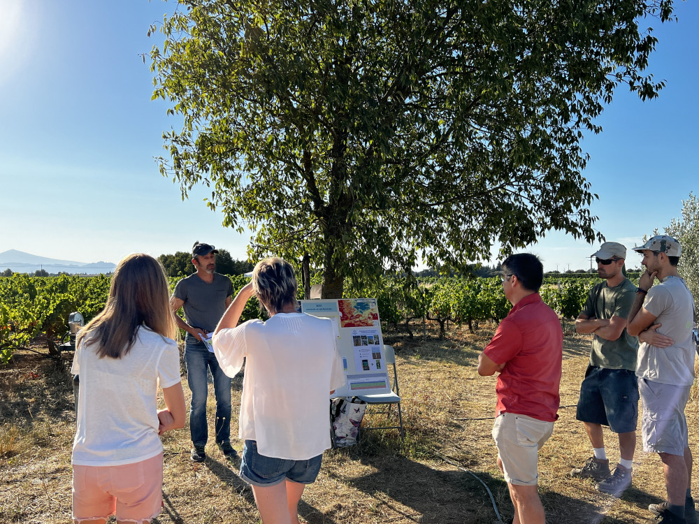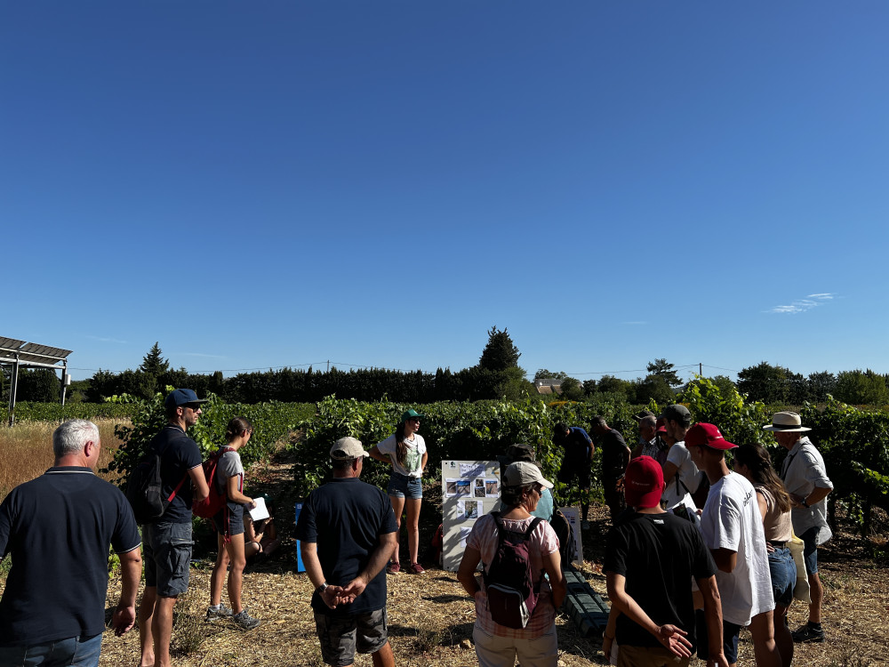 Si d'une année sur l'autre, les expérimentations se poursuivent, de nouveaux ateliers ont toutefois fait leur apparition : les haies en viticulture, l'irrigation et les outils de pilotage, ou encore l'impact de la taille rase de précision sur la vigne. Pour tenter d'éviter le soleil de plomb, techniciens, conseillers et agriculteurs se sont déplacés en nombre dès huit heures du matin. Soit au total près de 130 participants venus écouter les experts sur les stands improvisés.
