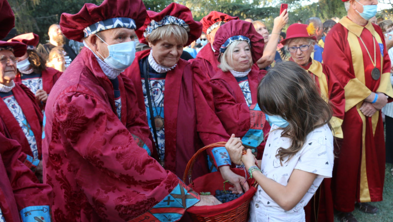 Mais avant de proclamer quoique ce soit, encore faut-il déguster la nouvelle récolte. Alors, peut-on la vendanger ? Après dégustation du raisin, les avis sont prudents… Philippe Pellaton, président d’Inter Rhône, remercie les confréries pour leur participation et leurs animations. Et, avec un air entendu, annonce : "Avec 2021 arrive un grand millésime car, dans les Côtes-du-Rhône, nous n'avons que de grands millésimes ! Mais il sera rare. Faites des provisions !". Puis, souhaitant une bonne récolte à tous, il souligne : "Les vendanges seront plus tardives, nous attendons encore une petite semaine". Le panier de raisins passe de mains en mains, et chacun donne son avis : "Il est bon, il a du goût, il est frais", analyse Christian Mounier, du Conseil départemental. "Je ne suis pas un grand spécialiste, je préfère attendre et goûter au vin du millésime 2021" se défausse Claude Tummino, adjoint représentant la maire d’Avignon. "Le raisin est bon, pour sauver les vignes, buvez du vin !", lance Bénédicte Martin, conseillère régionale. "Le raisin est très bon, je pense aux viticulteurs pour lesquels la campagne a été difficile avec le gel, cela fait du bien de se retrouver" souligne pour sa part le préfet de Vaucluse, Bertrand Gaume avant que la députée d’Avignon, Souad Zitouni, n’adresse un mot d'encouragement à tous les vignerons : "Je voudrais vous remercier pour tout ce que vous faites, pour votre résilience".