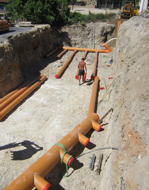 Un puits provençal en construction pour l'école de Mormoiron (84), il restituera un air à 20°C.