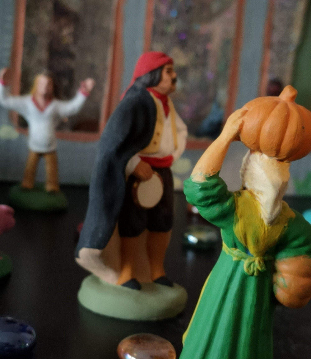 Dimècres, coma chasque an, me siáu cubèrt de pòussa a la cròta, de bolegar lei cartons m'es penós e m'agrada pas... mai enfin, lo resultat aqueu m'agrada : lo Belem ! Aquelei pichonei personatges que son nòstrei santons, lei santibelli, nos venon de la pastorala, que tanben lo monde afogat començaràn lèu de nos jugar sus lei pontins dau país. Nòstrei santons m'agradan per amor que nos dison una societat (perduda !) onte chascun podiá trobar sa plaça, e onte chascun podiá anar de cotria amé le...