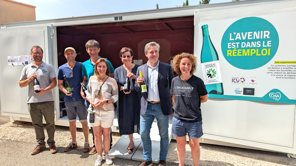Dans une logique d'économie circulaire et de soutien aux filières locales, la CoVe, avec l'ICV et l'AOC Ventoux, mettent en place un nouveau dispositif en faveur du réemploi des contenants en verre. Il a été inauguré le 13 juin dernier.