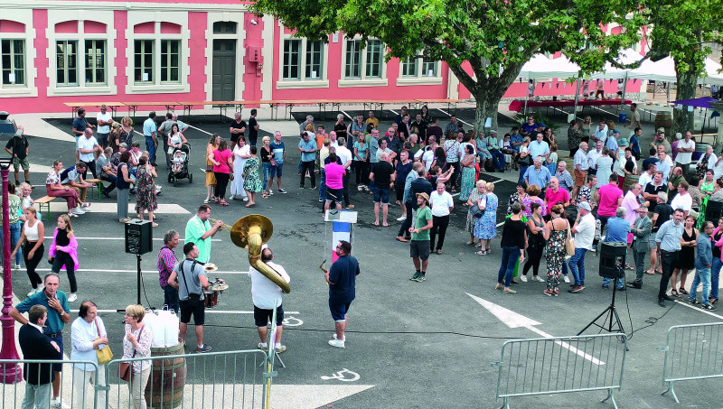 Après la visite, tous se retrouvent sur la place du village pour un buffet sympathique, arrosé de cairanne blanc et rouge, au son d'une joyeuse fanfare.