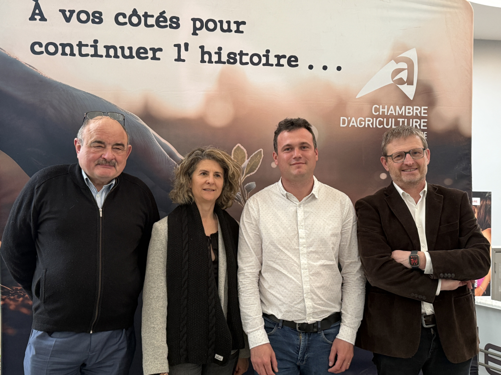 La nouvelle équipe, en place depuis maintenant un an, "plus jeune et plus présente sur le terrain, a à cœur de s'impliquer au plus près des agriculteurs, avec une volonté de proximité", explique la présidente de la Chambre d'agriculture, Sophie Vache, aux côtés d'André Bernard, de Jordan Charransol et de Thierry Vaute.