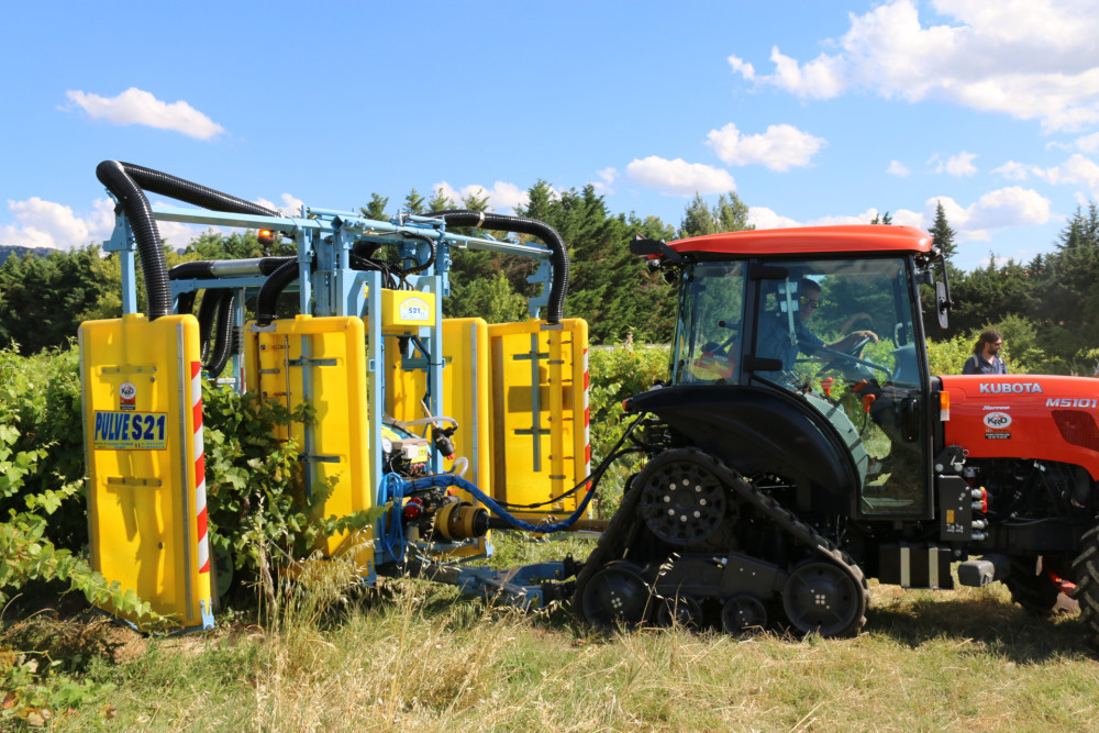 Les visiteurs ont pu assister à une démonstration en vigne du pulvérisateur confiné S21, de Pulvéman, représenté en Vaucluse par KRD équipements, de Cavaillon.