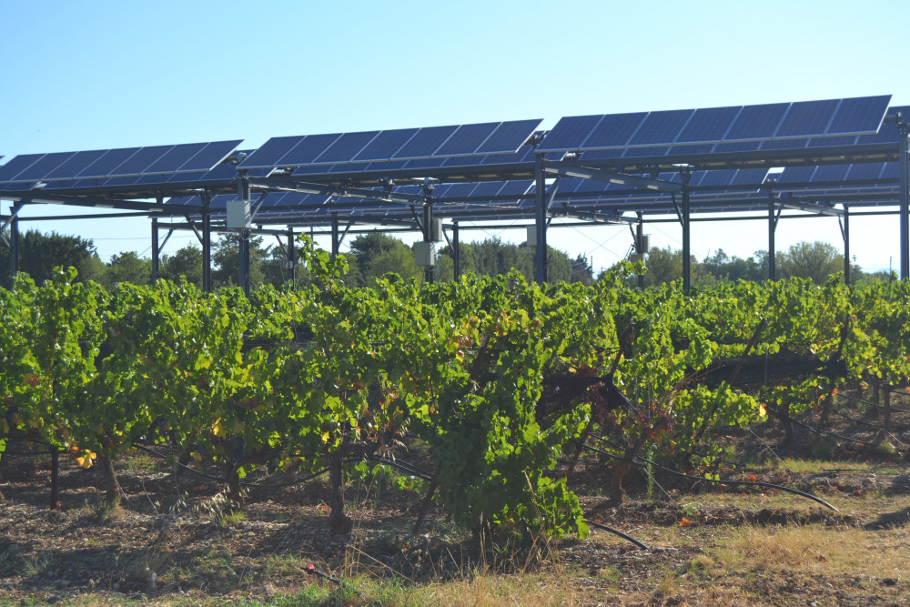 Tout aussi important que l’irrigation, la réduction de la pression climatique sur les vignes s’annonce comme une autre option pour la société aixoise Ombréa. Elle expérimente depuis deux ans, avec la SCP et l’IFV, un outil innovant de système de régulation climatique par ombrières pour des cultures de plein champ. « Il s’agit de panneaux photovoltaïques intelligents installés au-dessus des cultures et portés par des structures d’acier, qui créent un microclimat favorable à leur croissance. D’autres outils peuvent être adaptés sur la structure de l’ombrière, comme des filets anti-grêle pour faire face aux effets climatiques extrêmes », explique l’ingénieur agronome, Samuel Roy.