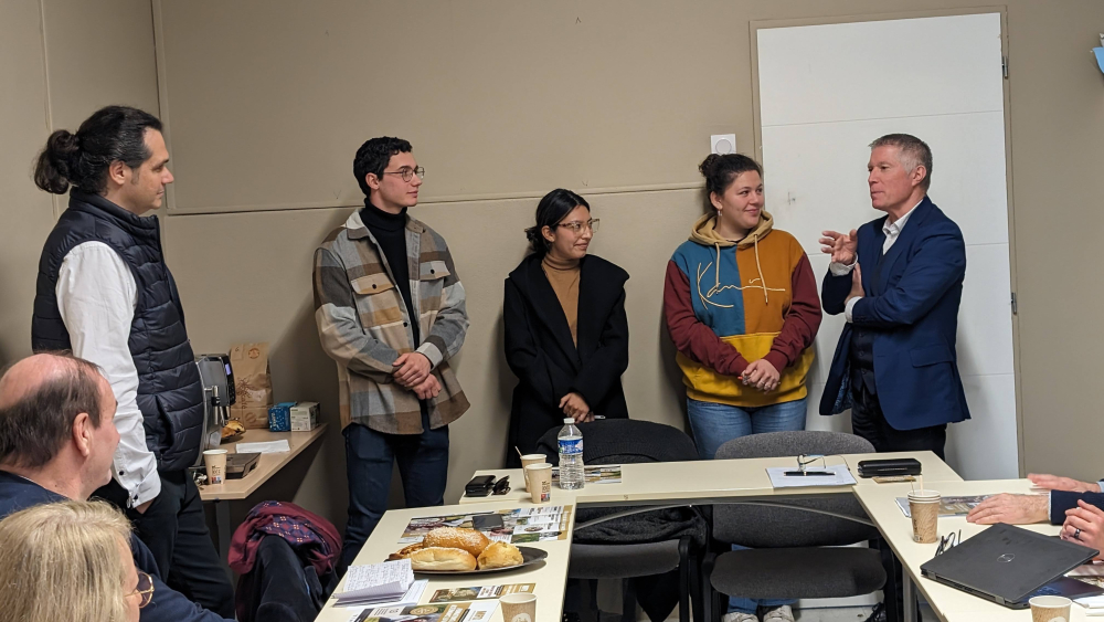 Patrick Chaze, directeur de la MFR du Haut Vaucluse, à Bollène, et Hervé Proksch, président d'Ocapiat, entourant trois jeunes en apprentissage, heureux de leur parcours et de leurs choix.