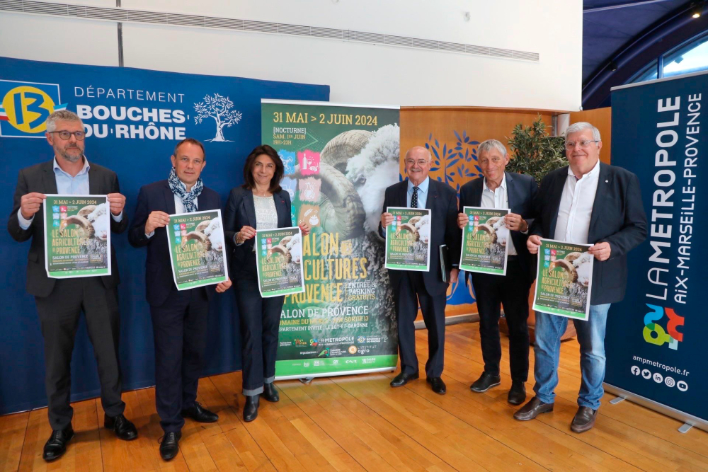 Martine Vassal, présidente du Conseil départemental des Bouches-du-Rhône, a présenté les contours du prochain salon, aux côtés de Patrick Lévêque, président de la Chambre d'agriculture des Bouches-du-Rhône, et d'élus.