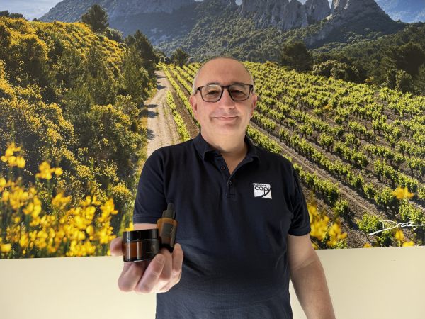Patrice Florentin, directeur du Groupe CAPL, présente les produits de la nouvelle marque 'Vaporis angélica', élaborés à partir de déchets de tomate et de raisin de cuve.