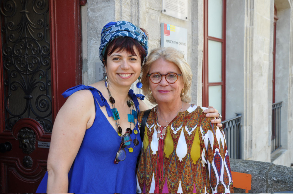 Deux femmes charismatiques, chacune dans son domaine : l’auteur-interprète, Trinidad Garcia et la viticultrice Brigitte Noël, en marge du Festival d’Avignon. (© M.S.)