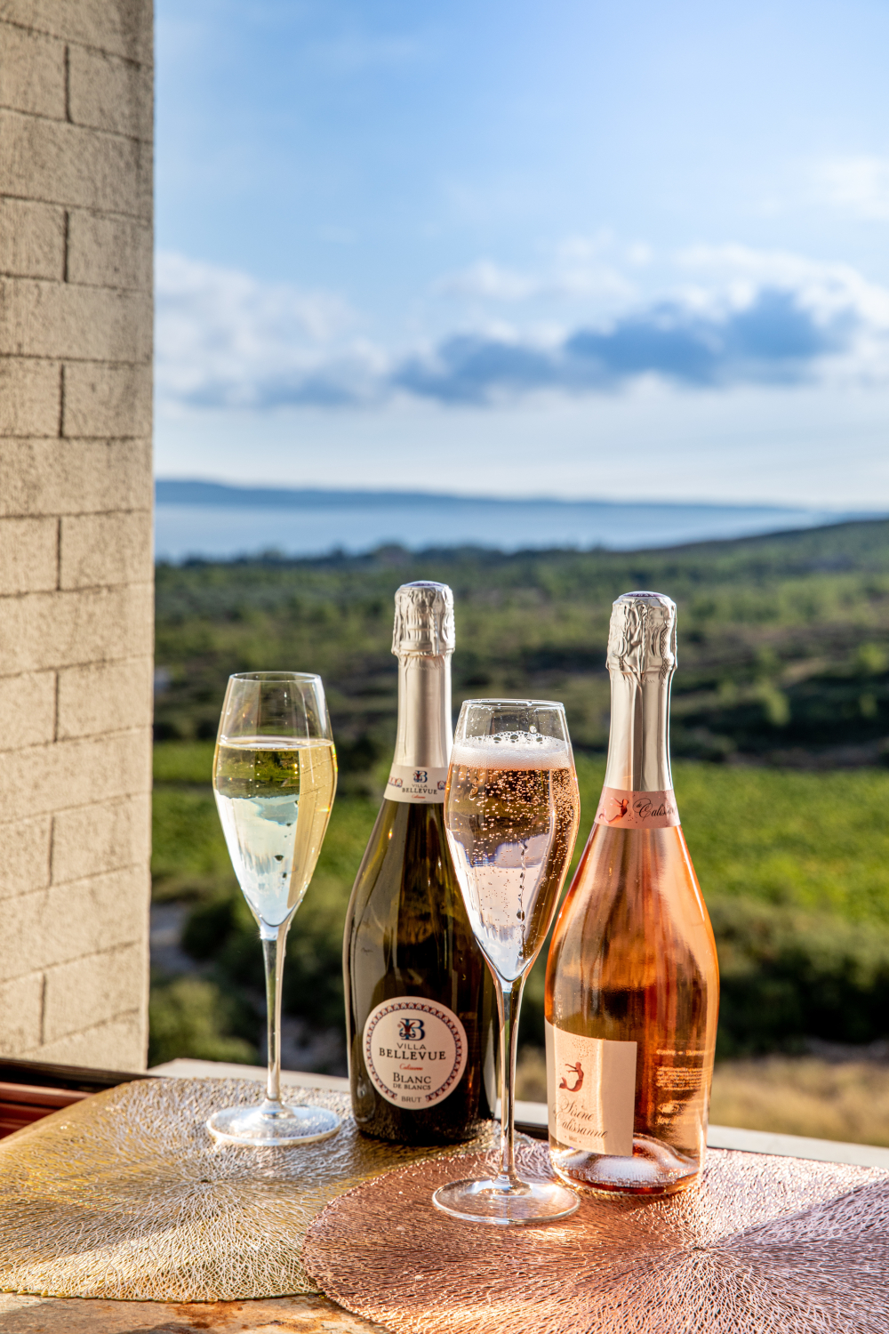 Producteur de vins rosés, rouges et blancs, le domaine a lancé un premier effervescent rosé, 'La Sirène de Calissanne', en 2021. Comme en témoigne Sophie Kessler, la cuvée a très bien fonctionné. "Le rosé pétillant a beaucoup été apprécié à sa sortie. Environ 10 000 bouteilles ont été produites et sont commercialisées chaque année. À l'occasion des soirées afterwork et des évènements que nous organisons, les gens aiment bien débuter ces soirées festives par un verre de pétillant. Après la sortie du rosé, nous avons reçu beaucoup de demandes pour un blanc pétillant. On constate d'ailleurs un regain d'intérêt pour les vins blancs, tranquilles ou effervescents. Nous avons eu l'idée pour le lancement de la Villa Bellevue d'associer une nouveauté. Une cuvée d'un blanc pétillant qui allait de pair avec cette belle demeure entourée de vignes et d'oliviers."
