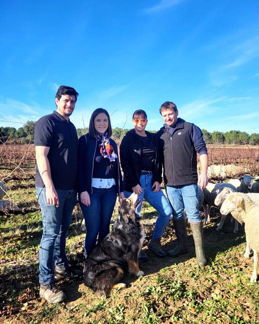Rémi Dumas et Naïs Dumas-Trinquier, Pascal Conge et sa compagne, Alicia Desfours, se sont associés il y a un an pour gérer leur nouvel atelier d'élevage, point de rencontre entre leurs deux exploitations viticoles respectives.