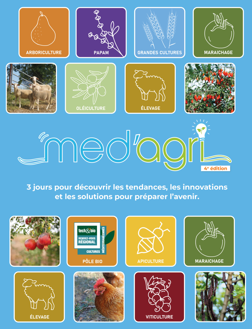 Le voile va se lever le 15 octobre prochain, à 9 heures, sur la 4e édition du salon professionnel de l'agriculture méditerranéenne, Med'Agri. Durant trois jours, les visiteurs auront accès aux dernières innovations et pourront rencontrer des professionnels sur les stands des exposants, au cours de conférences ou d'ateliers, pour relever les défis actuels, nombreux. Et aussi prendre un peu de bon temps en ces temps difficiles.