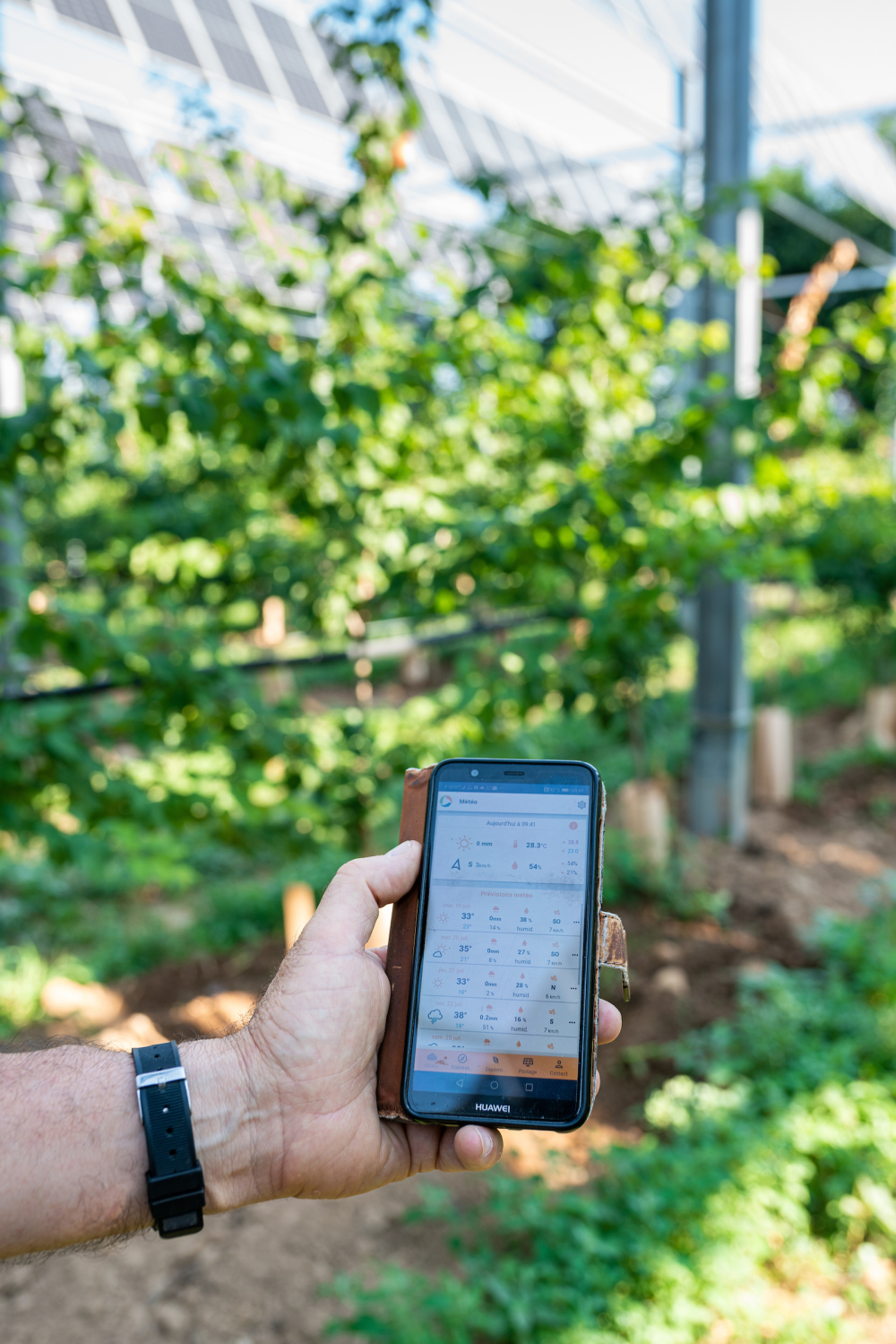 L'application Sun'Agri App permet à l'agriculteur d'accéder aux données de l'ensemble des capteurs installés à la parcelle. Station météo, capteur d'ensoleillement... sont consultables en temps réel sur smartphone ou ordinateur. Des courbes de comparaison avec une parcelle de référence à proximité sont aussi consultables.