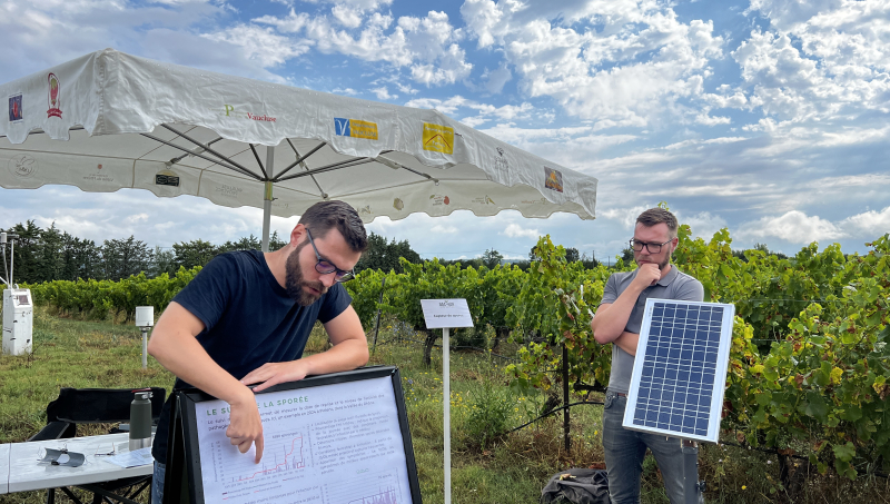 C'est au cours de discussions avec Clément, son frère, et avec la ferme intention de revenir en Vallée du Rhône vers sa terre natale que leur bureau d'études voit ainsi le jour, et entre en activité dès avril 2023. "Le projet de suivi de mildiou a commencé avec l'IFV de Nouvelle-Aquitaine et son réseau de partenaires. Plusieurs points de détection ont été mis en place pour aborder la réflexion d'intégrer les données des sporées dans la lutte phytosanitaire. L'idée était ensuite de développer cette idée dans d'autres régions", poursuit le directeur. Et de son frère, président et co-fondateur de la structure, d'ajouter : "Nous avons avec l'IFV une approche de partenaire. Il était difficile pour eux de s'étendre sur d'autres territoires, nous arrivons donc en quelque sorte en support, avec une approche de modélisation différente."