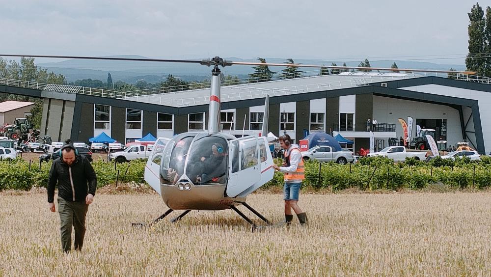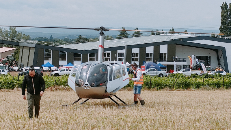 Au fil de la journée, le ciel s'est dégagé et les baptêmes d'hélicoptère, pour le plus grand plaisir des clients, ont pu s'enchaîner, permettant des vues imprenables sur le nouveau bâtiment entouré par les champs de lavande et de céréales. Autour de l'établissement, de multiples stands de matériels agricoles des partenaires accueillent les visiteurs.