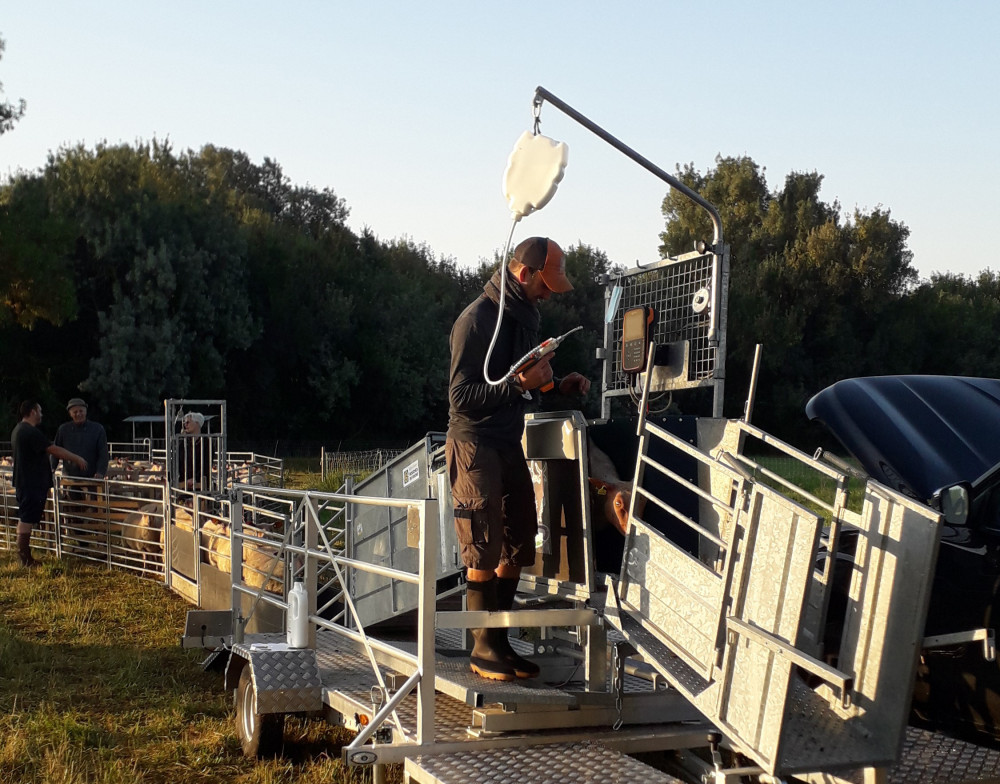 Un pistolet automatique relié à une bascule, préalablement configurée, permettra de faire un dosage précis et individuel pour chaque animal, en fonction de son poids vif. Par exemple, pour un vermifuge à injecter par voie orale : 2 ml/10 kg pour une brebis de 55 kg, le pistolet va préparer une dose de 11 ml automatiquement.