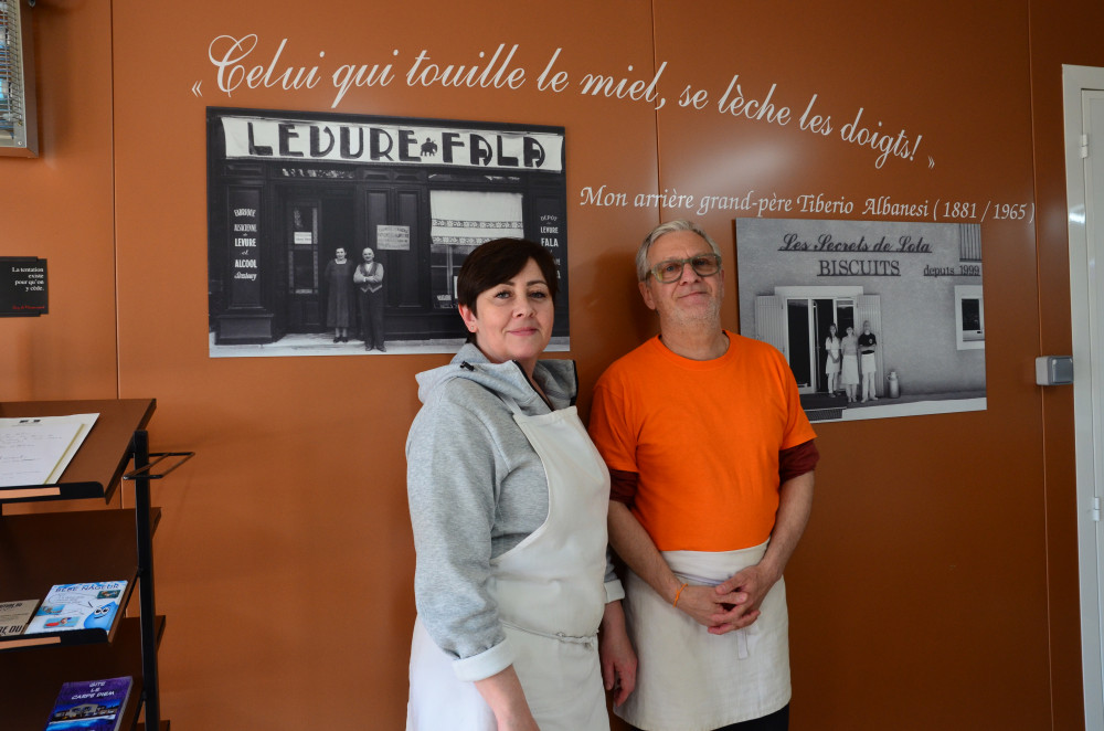 C’est une petite bâtisse sans prétention, tout au bout d’une petite route, juste à l’entrée d’Entrechaux en venant de Malaucène. Un grand parking, une devanture accueillante et, à l’intérieur, le grand sourire de Laurence Albanesi et de son mari, Marc Boccassini. Elle ne reste pas, retourne très vite à la fabrication de ses biscuits. C’est donc Marc qui fait les présentations.