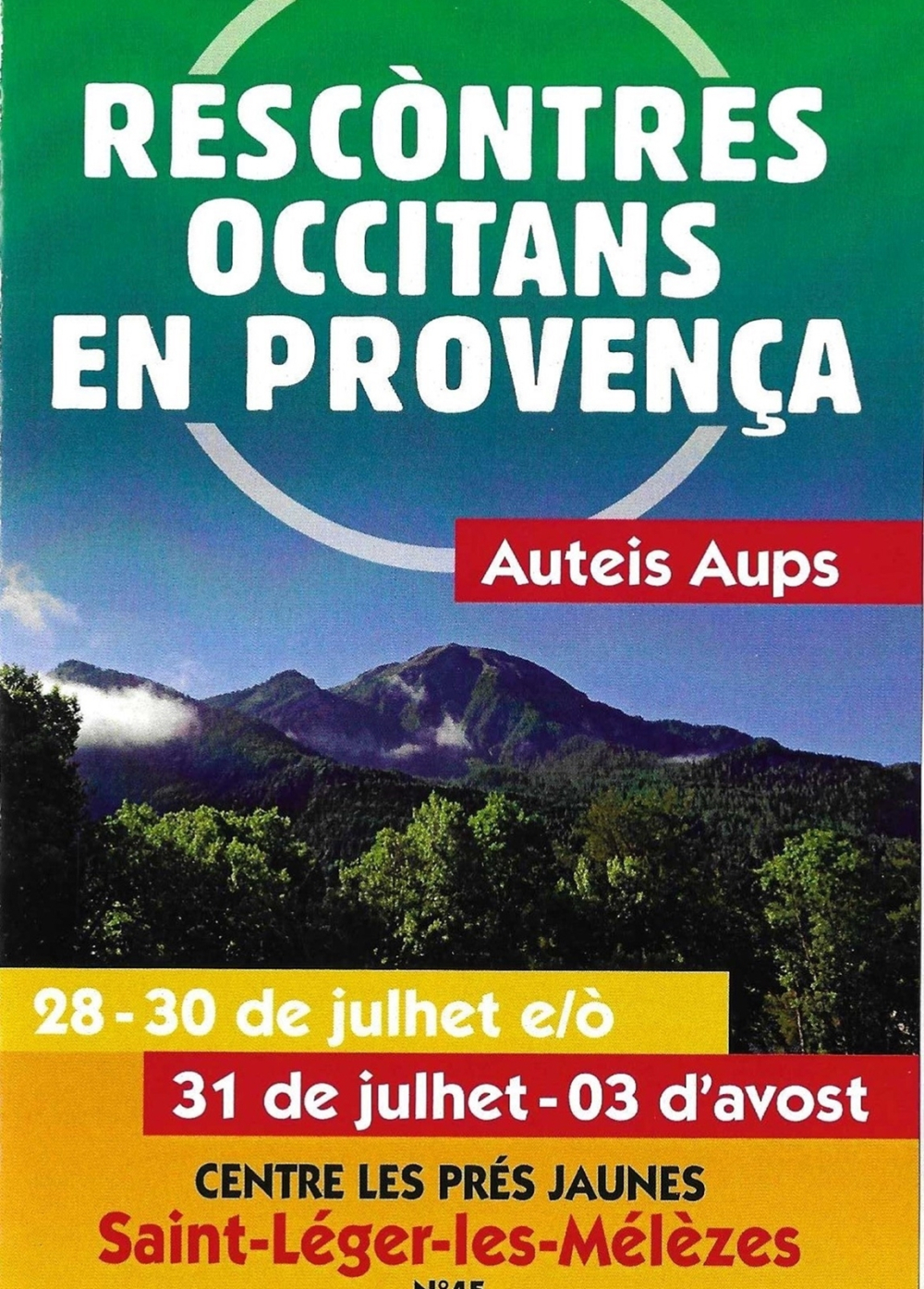 Les 'Rencontres occitanes en Provence' se tiennent du 31 juillet au 3 août, au centre 'Les prés jaunes' à Saint-Léger-les-Mélèzes (05).
