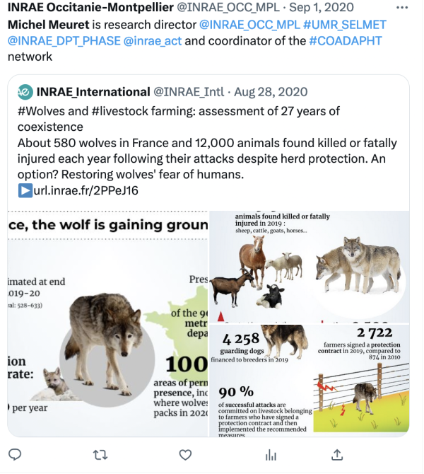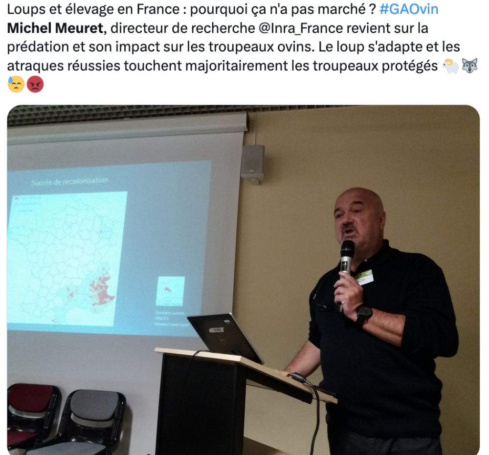Depuis plus de 11 500 ans de domestication du bétail, les loups sont une source de nuisances. Mais ce qui différencie les temps anciens de l'époque contemporaine, c'est la pression constante que l'homme exerçait alors sur le loup, "en tuant ceux qui s'attaquaient à leurs bêtes". Lors des 1res Assises de la prédation, le directeur de recherche Inrae, Michel Meuret, a fait la chasse au mythe. "Il ne faut pas sous-estimer l'intelligence du loup." Ils s'adaptent parfaitement à leur milieu, se comportent en opportunistes qui, à chaque fois, évaluent le risque à la quantité de chair disponible. En clair, Michel Meuret explique que les mesures actuelles, tels que les tirs de défense soumis à autorisation préfectorale, sont et resteront inefficaces. Le fait pour le loup d'attaquer une première fois, puis une deuxième fois... un troupeau sans impunité, développe en lui un sentiment de récompense. C'est pourquoi il préconise d'inverser la tendance : "Il nous faut rétablir des signaux clairs." Donc, "éliminer les loups trop insistants, pour que les survivants d'une meute associent la présence d'humains à proximité des troupeaux à un réel danger". Si l'homme est un loup pour l'homme, il doit redevenir un loup face au loup.