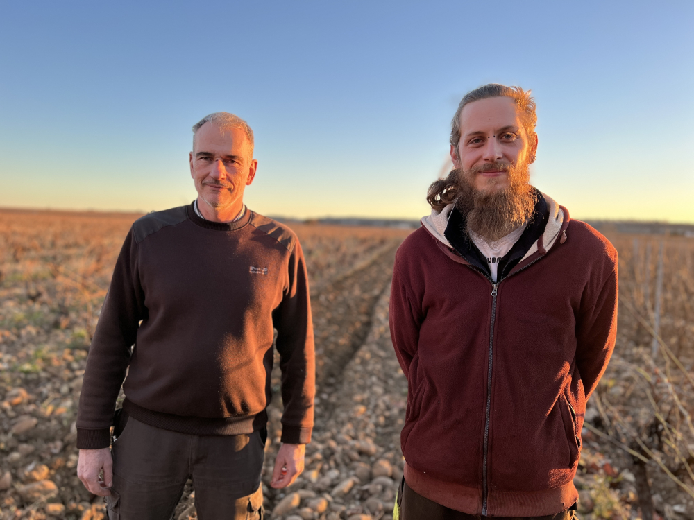 Frédéric Chastan, viticulteur, et Lorenzo Culianez, son apprenti pour les derniers mois de 2023, et désormais salarié. Ils apprennent encore à se découvrir au fil des cycles de la vigne.