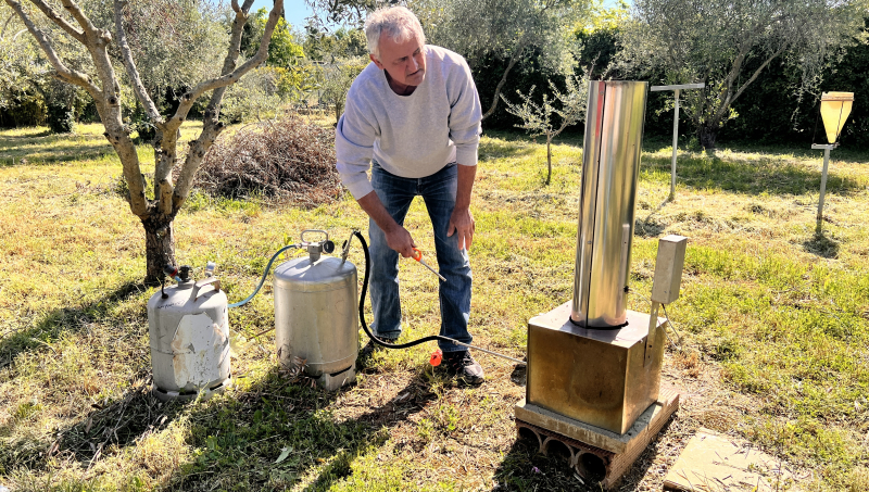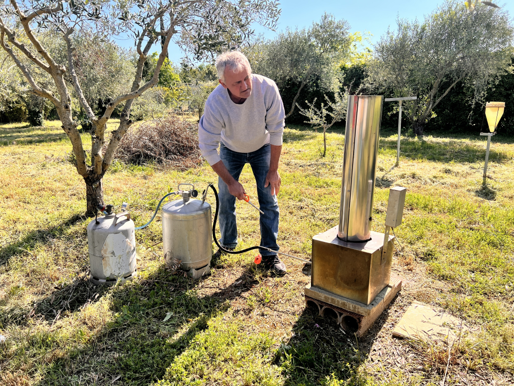 Les outils - en forme de petites cheminées - accompagnés de deux petites bonbonnes, doivent être mis en route au moins trois heures avant un potentiel épisode de grêle. L'association s'appuie sur les données et alertes de Kéraunos. Une fois allumés, les générateurs brûlent 1,10 li- tre de solution d'iodure d'argent par heure. Dans l'air, 200 milliards de particules par seconde partent à 2 000 mètres d'altitude, voire davantage avec la circulation des masses d'air.