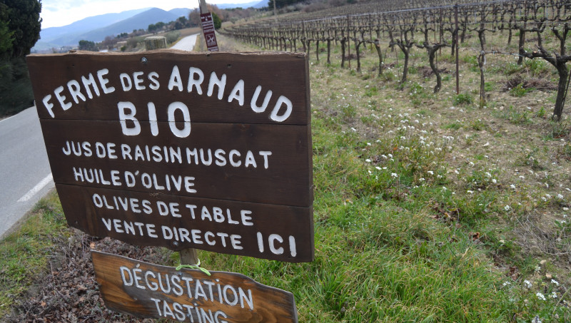C'est Yves Arnaud, le grand-père, qui a planté à la force de sa pioche après la seconde guerre mondiale, sur des terres nues et inexploitables, une partie du vignoble du domaine (5 ha des 22 ha actuels) et du raisin de table. « Respectueux de ses vignes et de leur environnement, il s'interdisait déjà toute utilisation de produits chimiques de synthèse », explique aujourd’hui son petit-fils, Martial. Dans les années 70, Pierre succède à son père Yves et agrandit le domaine. Il fait partie des créateurs du label ‘Nature et Progrès’ auquel il adhère depuis 1978, et diversifie les productions avec des asperges et des fruitiers, toutefois rapidement abandonnés. Mais il développe avec succès un atelier de jus de raisin muscat, avec lequel le domaine a acquis une « petite notoriété » en gagnant en particulier 7 médailles au concours général agricole en 2013, 2014 (argent), 2015 (or), 2016 (argent).