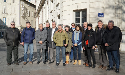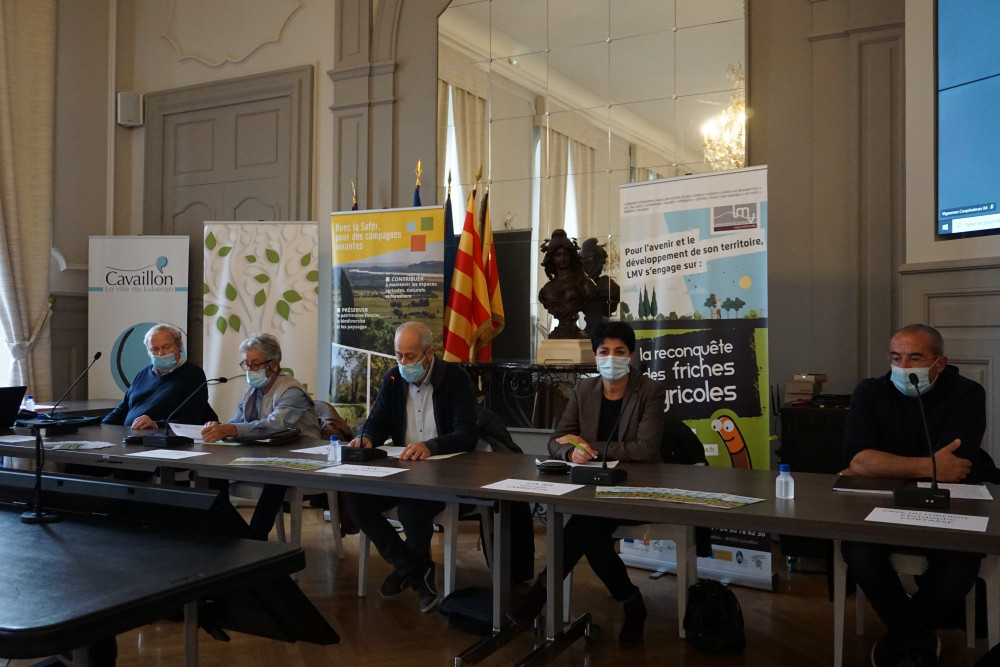 Les élus de Luberon Monts de Vaucluse et ses partenaires pour la reconquête des friches agricoles ont présenté leurs actions à la presse, le 8 décembre, à la mairie de Cavaillon.( © C. Poulain)