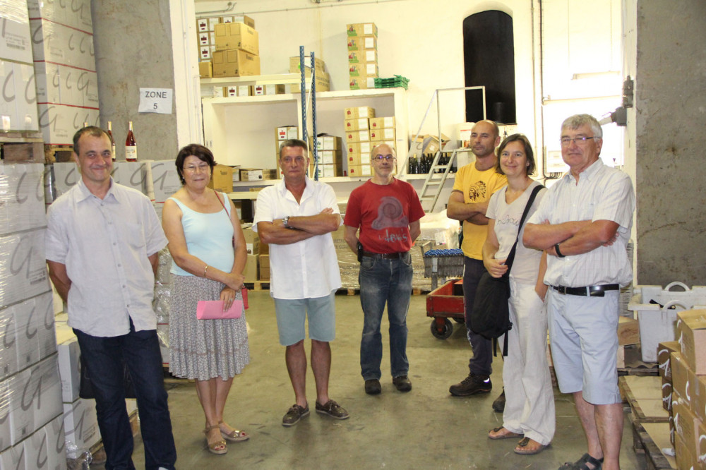 En préambule à la signature du contrat de prévention des risques professionnels, une visite des installations de la cave a été effectuée par les représentants de la MSA – Annie Rossi, présidente du comité de protection, Mme Dumas, préventeur, et M. Rozet, préventeur chargé du suivi du dossier – les représentants de Gigondas LaCave – Bernard Goumarre, président, M. Marcel, vice-président et Mme Souchière, vice-présidente – et les salariés en charge du dossier, Mme Brieugne et messieurs Bocheron et Chastan.