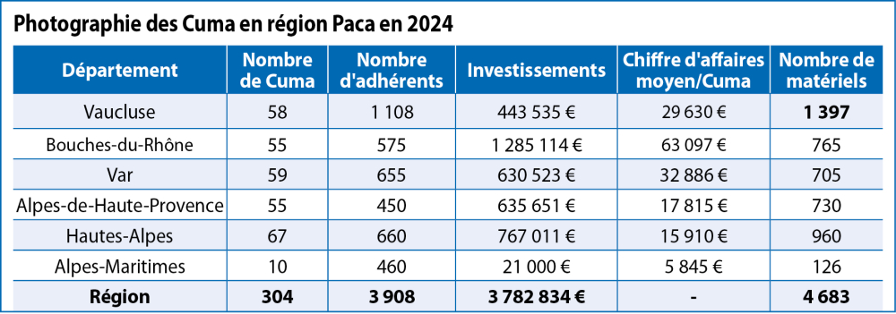 La Région Sud a confirmé en décembre dernier que l'enveloppe allouée de 700 000 € avait séduit au-delà des prévisions (les demandes sont de 1 million d'euros). "Bénédicte Martin, vice-présidente de la Région Sud, nous a assuré qu'aucun dossier ne serait laissé de côté ou rejeté. Mais cela risque d'impacter l'enveloppe 2025, maintenue et au même niveau que 2024, avec un taux d'aide de 25 % à tout investissement en Cuma", annonce Éric Ereteo, président de la Fédération régionale des Cuma.