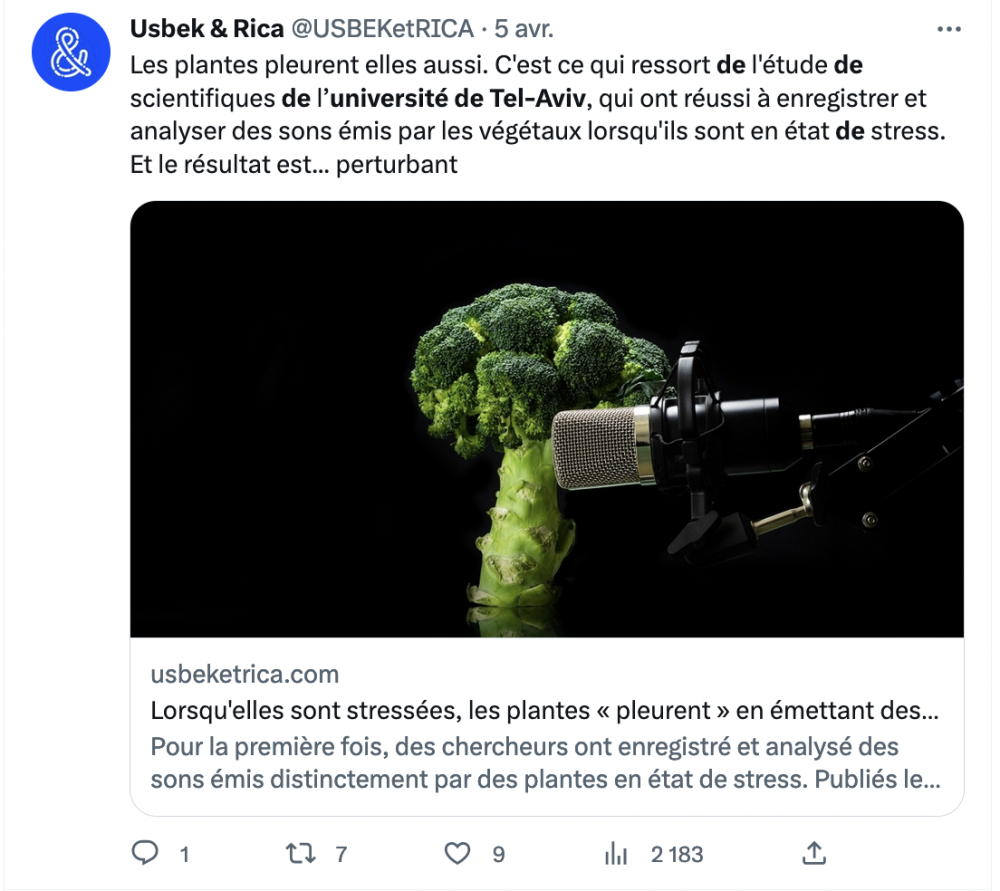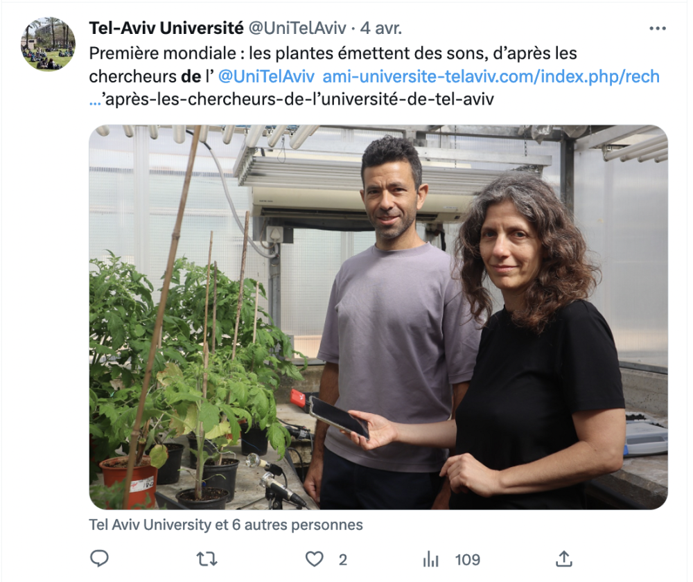 Des chercheurs de Tel Aviv ont enregistré des sons émis par des plantes. Des études avaient déjà capté des vibrations, mais là, c'est un bruit semblable à un craquement ou au bruit d'un popcorn qui éclate qui a été enregistré. Si vous n'avez jamais entendu votre ficus appeler à l'aide, c'est qu'il exprime des fréquences élevées, imperceptibles pour l'oreille humaine. Il a donc fallu les transformer, afin de les rendre audibles. Pour les capter, les chercheurs ont placé des micros à ultrasons, à 10 cm environ de plants de tomates, tabac, blé, maïs et autres cactus... Si les plantes en bonne santé n'émettent qu'un seul son par heure, des plantes en manque d'eau ou dont le feuillage, la tige sont abîmés peuvent émettre plusieurs dizaines de ces bruits de craquement par heure. Alors que nous dit la tomate qui a soif ? "À boire ou je tue le chien" ? Plus probablement, les sons seraient liés à des bulles d'air se formant ou se dilatant dans la tige, lorsque la plante subit un stress. Quand Victor Hugo disait que "c'est une triste chose de songer que la nature parle et que le genre humain n'écoute pas", se doutait-il d'être aussi près de la vérité ?
