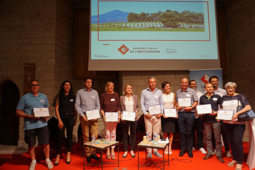 Créés par Inter-Rhône en 2014, les ‘Rendez-vous de l’œnotourisme’ réunissent chaque année une centaine de professionnels du tourisme de la vallée du Rhône et de la filière : propriétés viticoles, offices de tourisme, agences départementales de tourisme, comités régionaux de tourisme et prestataires privés ciblés, en particulier des agences réceptives et excursionnistes. La ‘Distinction œnotourisme’ répond à la demande croissante des tour-opérateurs et des touristes français et étrangers, qui souhaitent découvrir le vignoble autrement. « Aujourd’hui, plus de 500 entreprises des vignobles de la Vallée du Rhône respectent la charte de qualité d’accueil au caveau, parmi lesquelles 83 sont lauréates de la ‘Distinction œnotourisme’ » se félicite Michel Chapoutier, président d’Inter-Rhône. Matérialisée par une feuille dorée apposée sur une plaque à l’entrée du caveau, cette distinction apparaît sur tous les supports de communication, facilitant ainsi le repérage par les agences pour la commercialisation de prestations œnotouristiques en Vallée du Rhône.