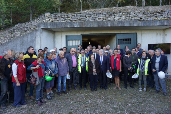 Devant la sortie du tunnel aménagé côté Bonnieux, de nombreux élus et agriculteurs ont célébré les 30 ans du percement du percement de la galerie du Luberon le 6 octobre 2017.