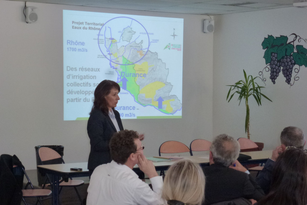 Une vingtaine de maires, accueillis par le président de la Chambre d'agriculture André Bernard et le DDT Jean-Louis Roussel, ont été informés par Marc Chemouni, chef de projet et par Mireille Brun, chargée de mission à la Chambre d'agriculture, du grand projet d'aménagement hydraulique pour l'avenir de deux territoires : le Nord Vaucluse et le sud de la Drôme. Un seul projet pour deux régions et deux départements.