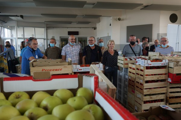 Élus de collectivités et représentants professionnels des deux côtés de la Durance étaient présents sur le Min de Châteaurenard, pour saluer l’engagement du maillon agricole dans la chaîne de la solidarité alimentaire. (© ED)