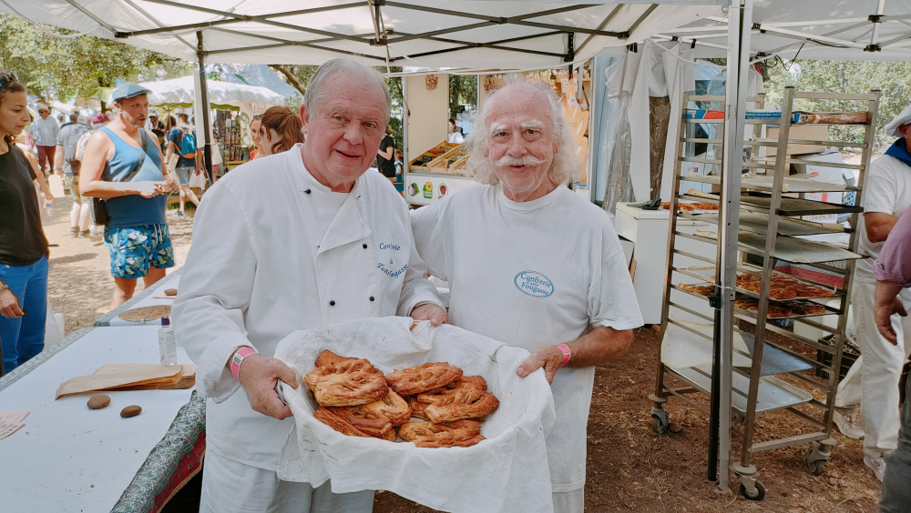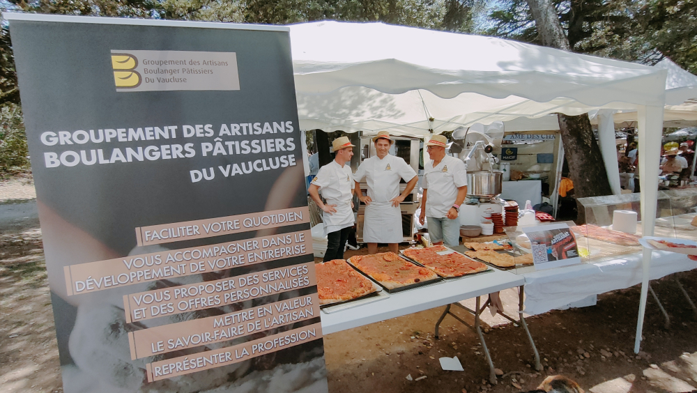 Les pizzas, autres focaccias et brioches, tout juste sorties du four, ne restent pas longtemps sur les étals du Groupement des artisans des boulangers et pâtissiers vauclusiens, où le président, Thierry Despeisse, et ses acolytes mettent les bouchées doubles. Tout comme à la confrérie des Taste Fougasse, où André Boyer, son président, et Christian Eckhout n'arrivent pas à suivre la demande de fougasses, qui ne restent pas une minute sur l'étal : "Nous avons été dévalisés depuis ce matin, je n'ai même pas eu le temps de manger", raconte André Boyer, poursuivant : "Je me suis levé à 5 heures du matin pour aller faire 700 omelettes à Maussane, pour la Carreto Ramado, et j'ai embrayé ici dans la foulée...". Dévalisés aussi au Panier de la Comtesse, où "l'ail noir fait fureur", s'enthousiasme Éric Zivkovic.