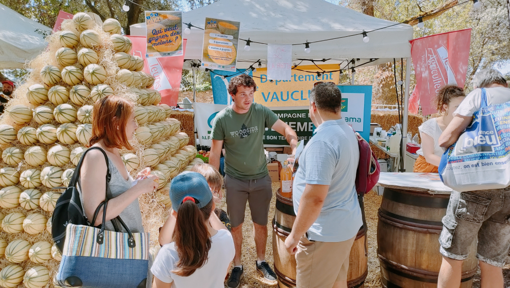 Le coup de com' est payant. Les artisans de Terroirs en fête ont bien compris que, pour valoriser le savoir-faire local, il fallait imaginer un faire savoir populaire. La présidente du Conseil départemental, Dominique Santoni, est ravie : "Cela fait six ans que le succès est là. C'est beau ! Nous le devons aux agriculteurs, à ce marché à ciel ouvert et à notre ambassadeur trois étoiles. Tous unis avec la Région pour défendre les produits du Vaucluse". Le coin des jeunes agriculteurs - annoncé par une pyramide de 320 melons provenant de l'exploitation pernoise de Christophe Jean, colorée d'une pléiade de pommes joufflues de l'exploitation thoroise de Paul Coynel - attire les jeunes. "C'est qu'il y a un melon à gagner" raconte le jeune agriculteur, Jordan Charransol : "Nous proposons un quiz pour promouvoir notre agriculture. Après trois bonnes réponses, nous offrons un melon et des pommes pour les enfants".