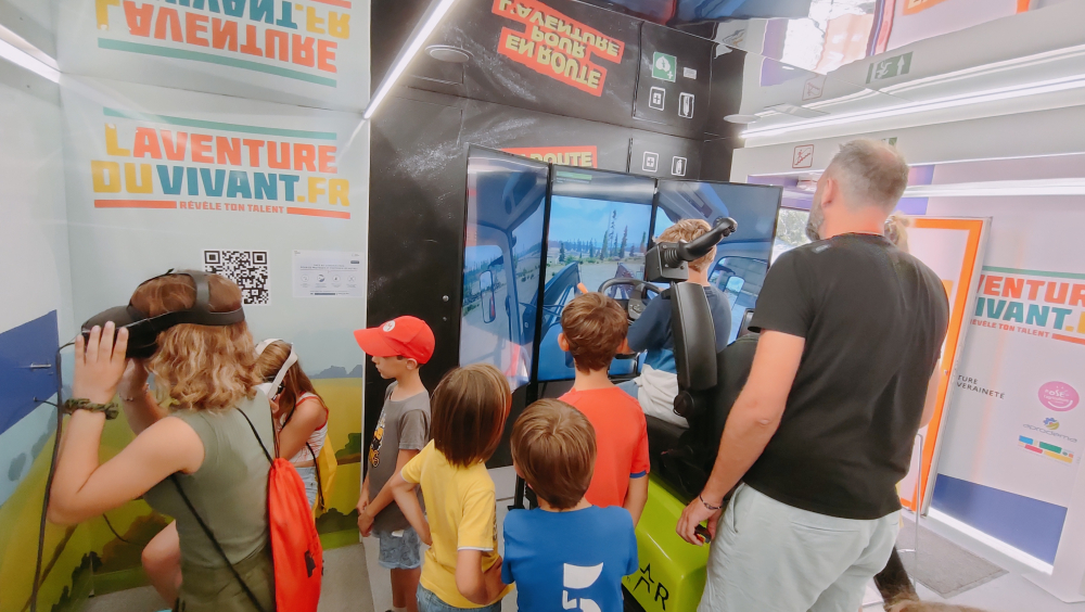 Non loin de la sortie et des restaurants dressés sous des grands tipis, l'énorme camion rouge de 'L'aventure du vivant' ne passe pas inaperçu : il propose une animation étonnante et itinérante, à l'initiative du ministère de l'Agriculture depuis 2020. Les enfants se précipitent sur le simulateur de conduite de tracteur, les différentes tablettes et casques en réalité virtuelle : "Nous nous plaçons habituellement en cœur de ville pour sensibiliser à l'enseignement agricole les enfants de 4e et 3e, au moment d'une possible orientation scolaire. Les enseignants nous réclament. Nous serons à Arles et Marseille en septembre". Rendez-vous est donc pris.