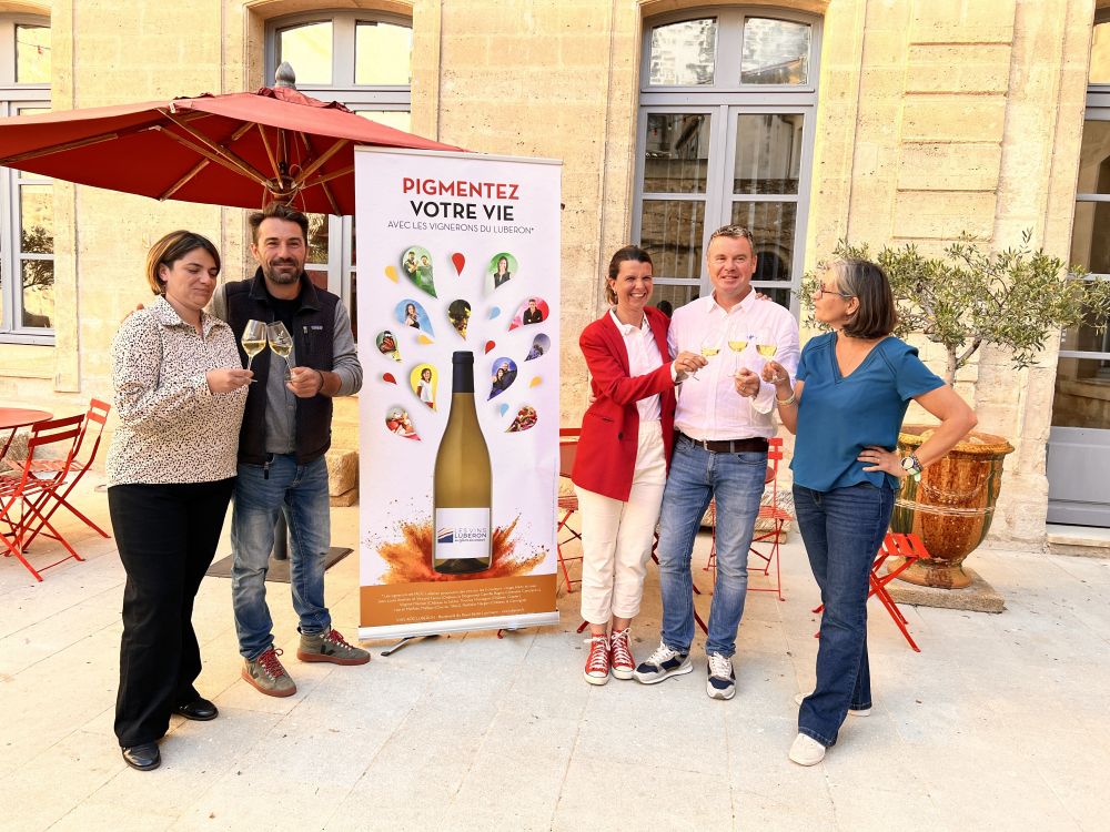 Les acteurs de l'AOC Luberon se réunissent pour présenter leurs projets avec, de gauche à droite : Charlotte Carbonnel, Romain Dol, Valentine Tardieu-Vitali, Joël Bouscarle et Nathalie Archaimbault.