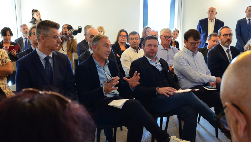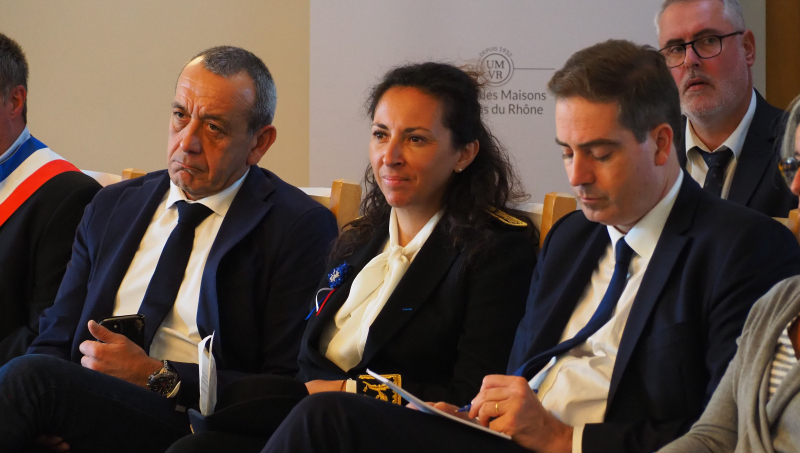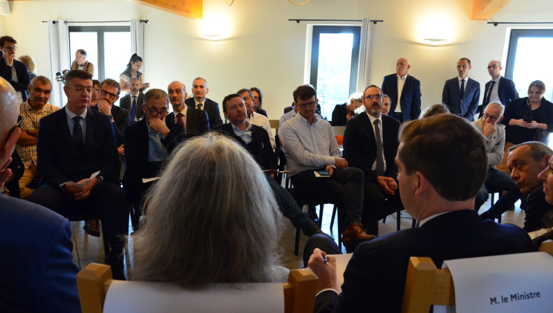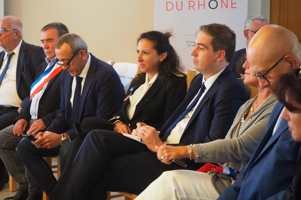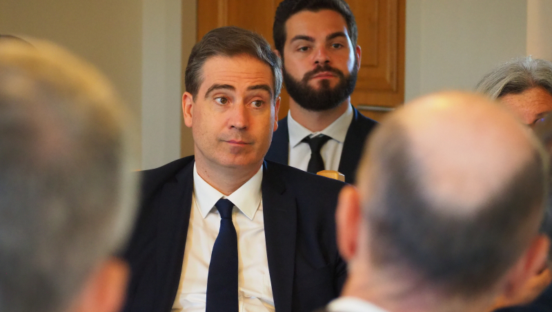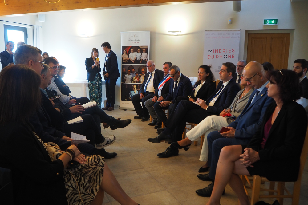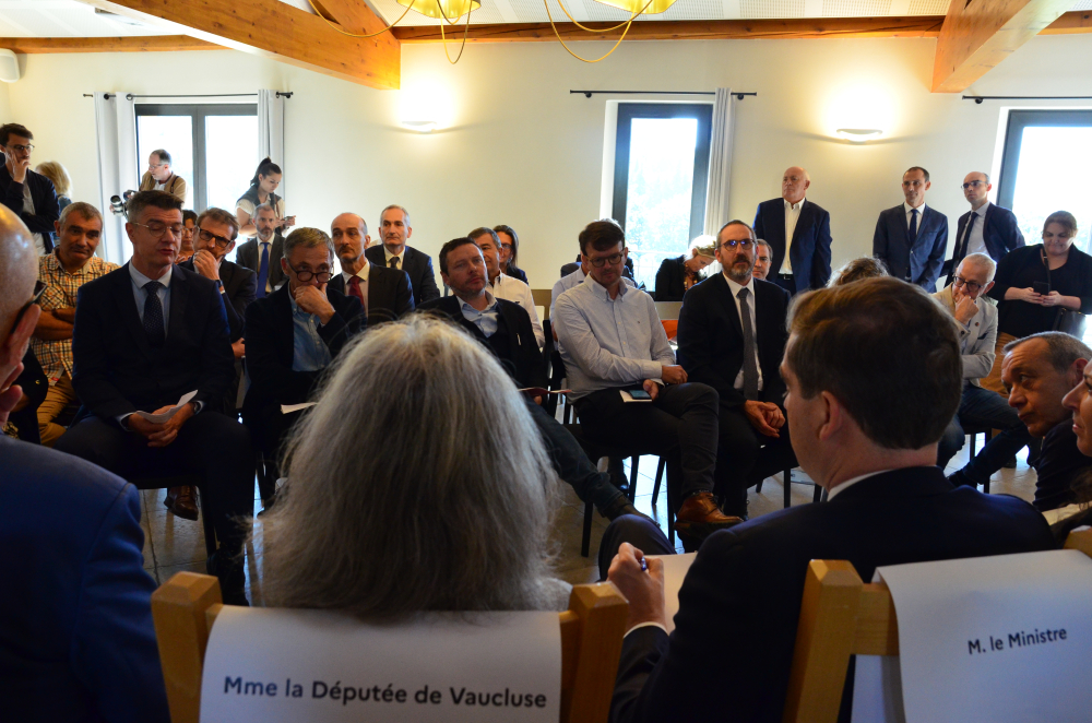 Le ministre, accompagné de la préfète Violaine Desmaret, du sénateur Lucien Stanzione, des deux députés de Vaucluse - Marie-France Lorho et Jean-François Lovisolo -, s'est ensuite installé face aux représentants des professionnels, parmi lesquels figuraient Philippe Pellaton, président d'Inter Rhône, Samuel Montgermont, président de l'Union des maisons de vins du Rhône, Denis Guthmuller, président du Syndicat général des vignerons des Côtes du Rhône, Philippe Guigal, administrateur de la Fédération des exportateurs de vins et spiritueux, mais aussi Sophie Vache, présidente de la FDSEA de Vaucluse, Georgia Lambertin, présidente de la Chambre d'agriculture, et Gilbert Marcelli, président de la Chambre de commerce de Vaucluse.
