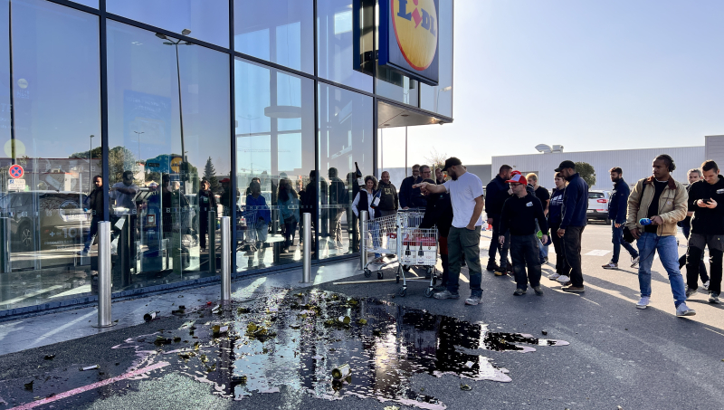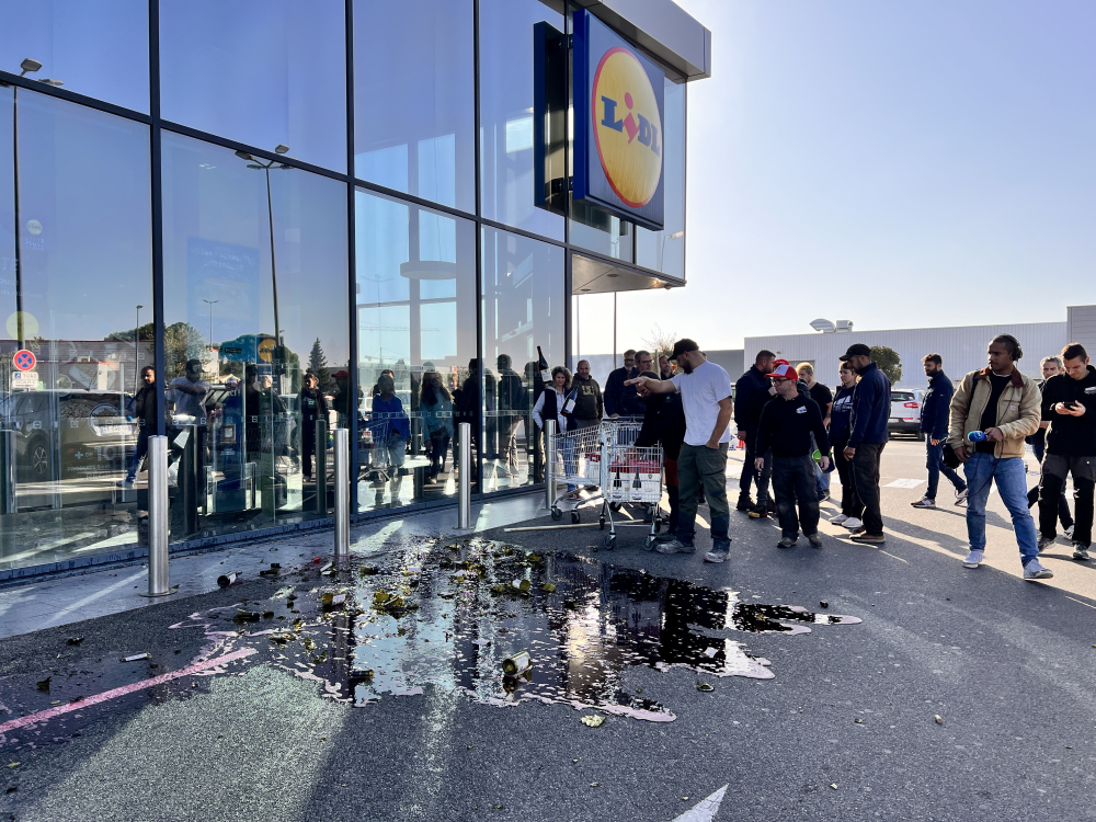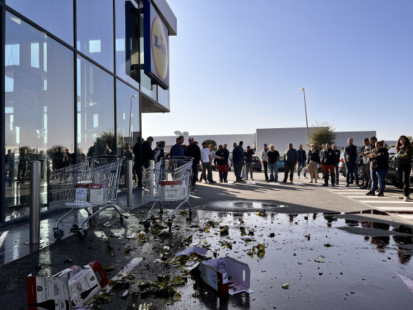 Les Jeunes agriculteurs et membres de la FDSEA ont cassé plusieurs dizaines de bouteilles devant un Lidl à Orange, ce lundi matin.