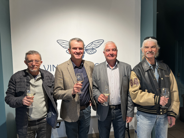 Les quatre présidents des interprofessions IGP : Jean-Claude Pellegrin, pour Intervins Sud-Est, Gérard Bancillon, pour la Confédération des vins IGP de France, Joël Reynaud, pour les IGP Vaucluse, et Thierry Icard, pour les IGP Méditerranée.