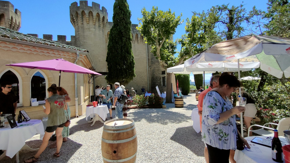 Mais la fête ne s'arrête pas là ! Le grand tour du 'Wine day' passe aussi par une étape au Domaine d'Abrigeon, à Vaison. Le vigneron, Julien d'Abrigeon, vient de réaliser sa première cuvée. Pour son premier salon, il est ravi de montrer et déguster sa cuvée 100 % grenache 'Coquelicot' 2021 classée en Vin de France : "Les gens qui n'aiment que le grenache sont ravis ! Je me suis installé fin 2020, j'ai acheté une parcelle d'un hectare à Buisson, puis j'ai pris en fermage sept hectares de grenache et syrah, en bio et biodynamie, qui sont actuellement élevés en vieux fûts et que je mettrai en bouteille en 2023". Autre détour par le Château Gigognan, de Sorgues, et ses cuvées de châteauneuf-du-pape Signargues et côtes-du-rhône villages 2017 et 2019 ; puis chez Julien Brunet, qui présente ses vacqueyras, plan-de-dieu et côtes-du-rhône blancs et rosés, inscrits dans la gamme Rhonéa.